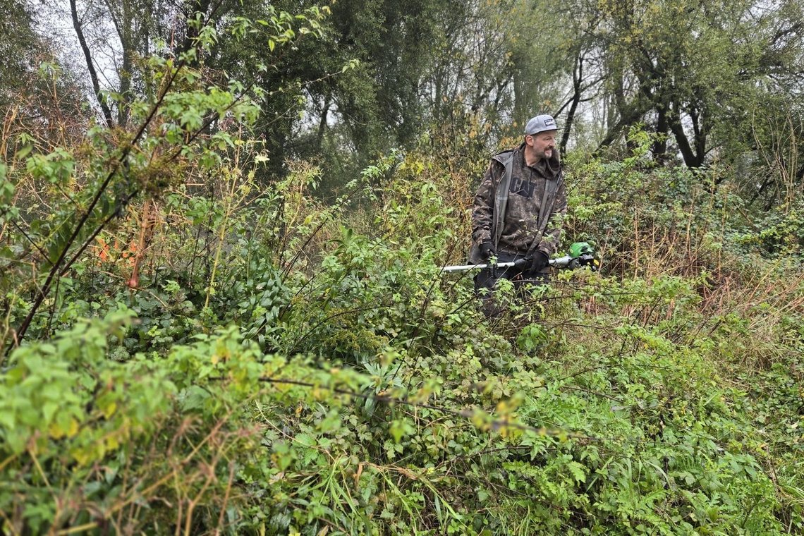 Mit Motorsensen, Kettensägen und viel Tatkraft wurden Sträucher, Gebüsche sowie überhängende Äste entfernt, sodass die Plätze nun wieder gut und sicher zugänglich sind. Zusätzlich wurde entlang der Uferbereiche Müll gesammelt, der leider sowohl von Anglern als auch von anderen Gästen am Rhein achtlos zurückgelassen worden war. Dadurch konnte nicht nur die Nutzbarkeit der Angelplätze verbessert, sondern auch ein wichtiger Beitrag zum Natur- und Umweltschutz geleistet werden. Trotz kühler Temperaturen herrschte eine motivierte Stimmung.