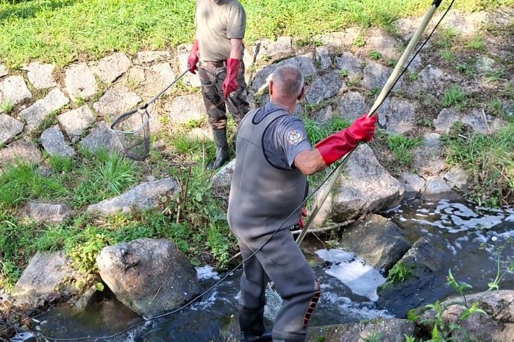 Elektrofischen am Mühlbach in Albbruck im Vorfeld der geplanten Baggerarbeiten.