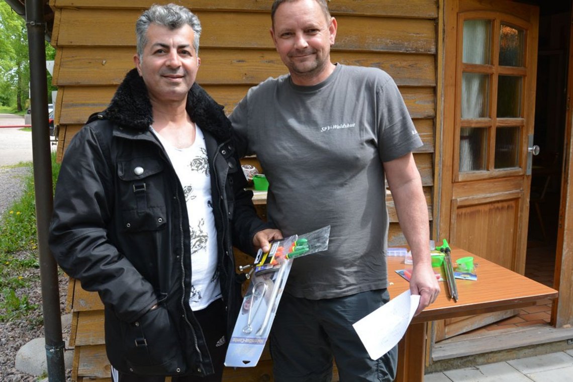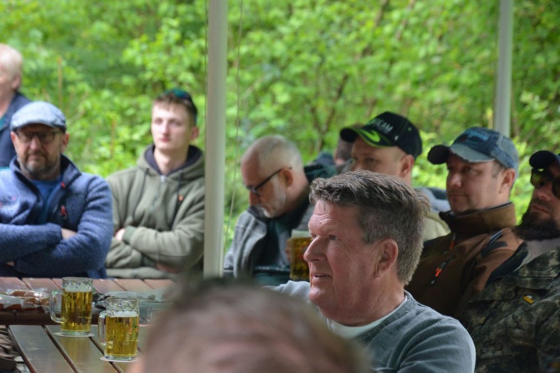 Nach dem Wiegen kam dann die Sonne heraus und unser Vereinsvorsitzende Thomas Zimmermann übernahm die Siegerehrung auf der Terrasse unserer Fischerhütte. Es gab herzliche Gratulationen und tolle Preise – und wer wollte, ließ den Tag gemütlich ausklingen.